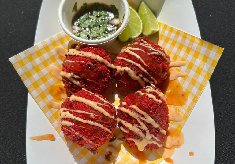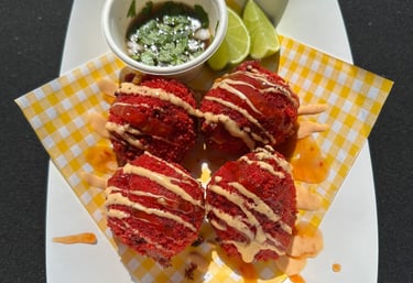Meat deep fried in a savory hot cheeto blend for deep, authentic taste with the added sauces.